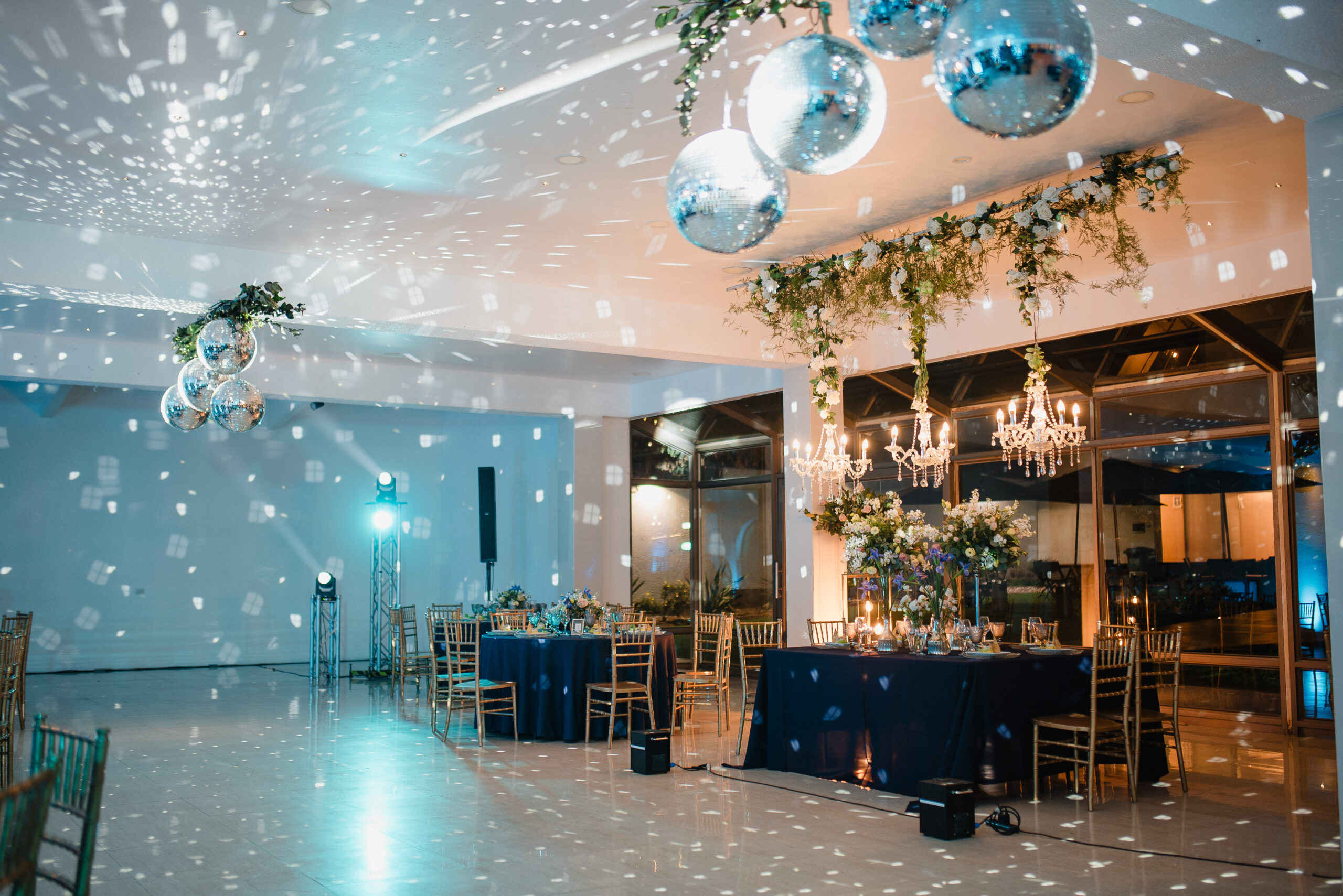 Boda elegante con muchos detalles y cristales, resaltando el color azul y los cristales como elemento principal, representando la armonía, elegancia y delicadeza de cada espacio.